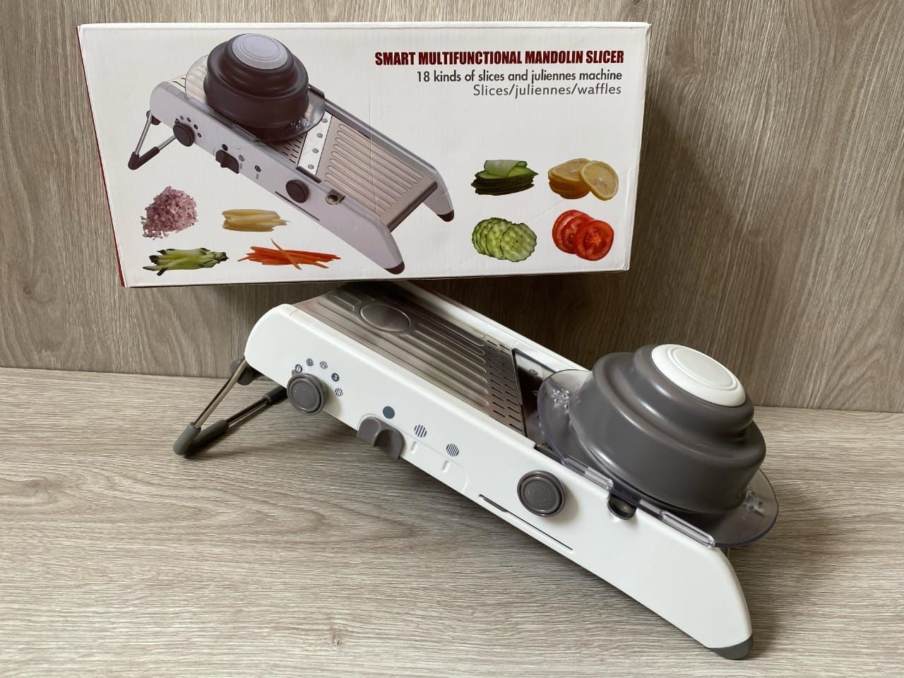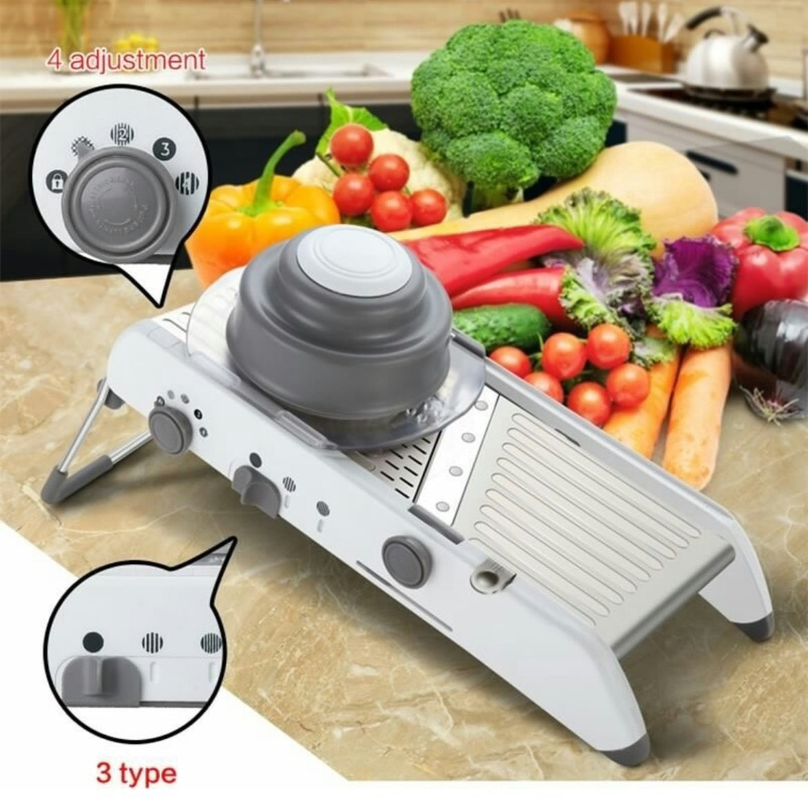 Esta cortadora multifuncional de alimentos posee un diseño ergonómico y antideslizante que te permitirá cortar tus alimentos de acuerdo con tus necesidades. Fabricado en acero inoxidable y plástico para uso alimentario. El soporte de mano posee un agarre cómodo que te ayudará cortar los alimentos sin sufrir accidentes. Características: